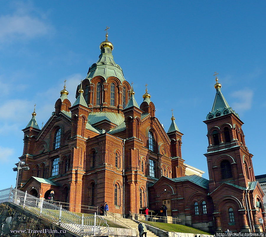 Православный Успенский кафедральный собор (1868 г.) из красного кирпича: со смотровой площадки собора открывается панорама города, порта и набережной.