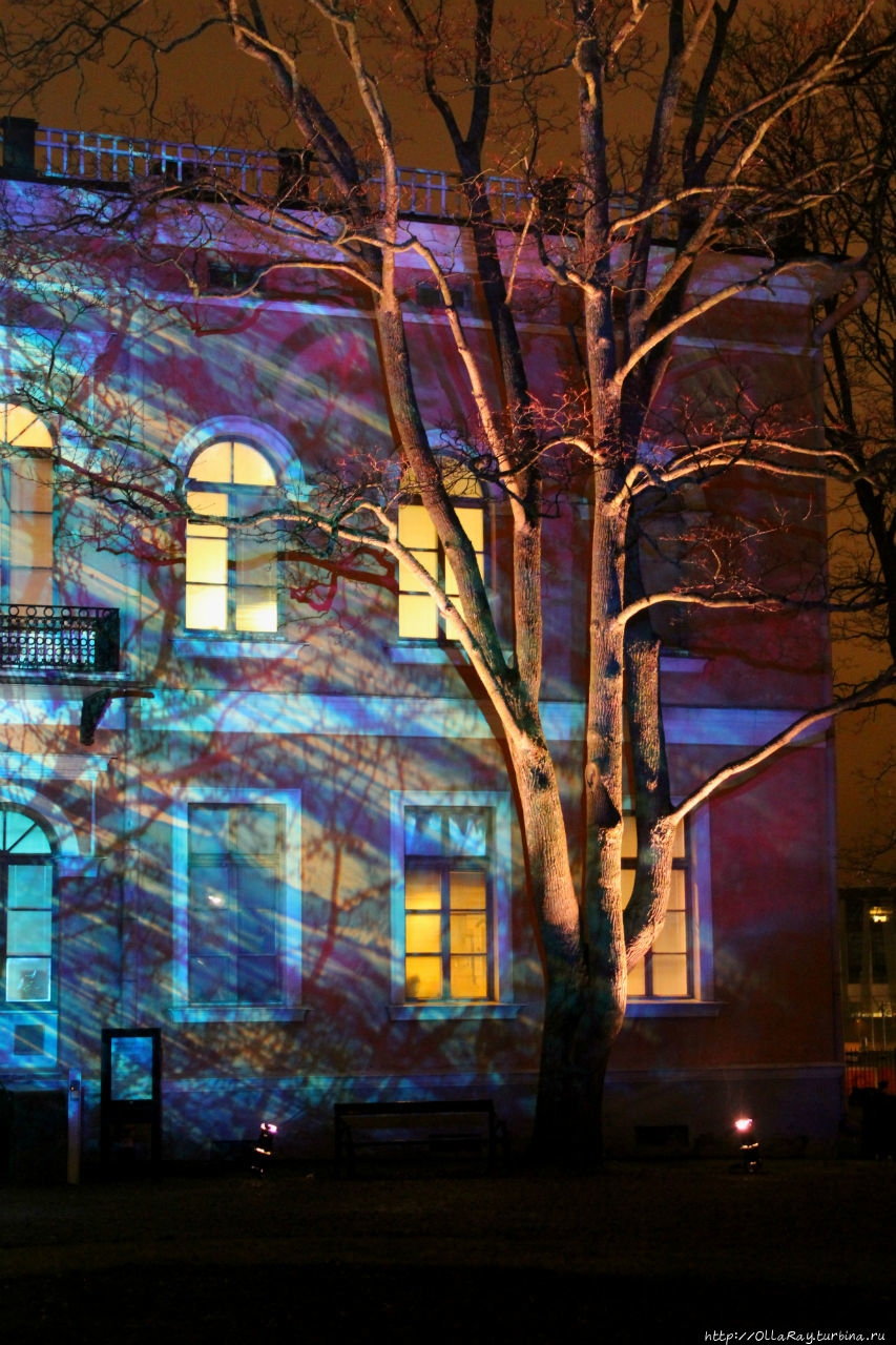 Украшать города финны начинают, как и остальные европейцы, уже в начале декабря. Климат здесь умеренный, поэтому в южной части страны сугробов ждать не приходится, а вот ледок порой сковывает мостовые и водоёмы, что забавно смотрится на фоне зеленеющих газонов. Однако, ничего не стоит и попасть под дождь в середине декабря, так что зонт прихватить не помешает. В Финляндии любят натуральные материалы, поэтому в городе повсеместно можно увидеть композиции из ветвей, лапника, сухостоев и вереска. Ближе к Рождеству повсюду появляются ёлки, естественно живые. Обычно их украшают лишь монохромной гирляндой с лампочками тёплого свечения. Иногда в композицию добавляют какой-нибудь нестандартный аксессуар. Или "берут" количеством:) Украшаются не только улицы и фасады общественных заведений, но и дворы обычных жителей, как, например, вот в районе Катаянокка. Как можно заметить, финны весьма минималистичны в украшениях пространства и праздничных деревьев шарами и новогодними игрушками, зато здесь очень популярны хвойные и плетёные подвесы, гирлянды, венки и живые цветы (пуансеттии и амарилисы), которые продаются в каждом гипермаркете и цветочном магазине. А вот такое сочетание лапника и гирлянды выбрали хозяева одного из зданий дизайн-квартала в Хельсинки. Кстати, рекомендую познакомиться с этим местом! В помещениях дизайнерского квартала всегда происходит что-нибудь интересное. Много выставок, презентаций, показов ведущих дизайнеров самых разнообразных направлений искусства оформления. Да и расположен квартал центрально, так что за одно можно ознакомиться с архитектурой старого Хельсинки. Несмотря на зимнее время, погулять в Хельсинки очень даже душевно можно не только по городским улицам, но и в парках, куда обычно устремляется поток туристов летом. Например, Беличий остров по особенному красив в пастельных декабрьских красках. Здесь вас по-прежнему встретят гуси и белки, ожидающие угощения. В дни зимних праздников в Сеурасаари, кстати, устраивают гуляния — по типу наших новогодних забав (