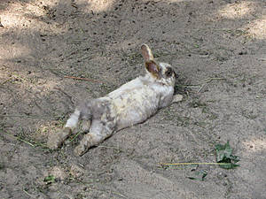 Стояла июльская жара. Кролики отдыхали в тени. А кое-кто даже решил подкрепиться.