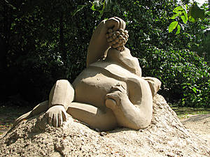 Неподалёку обнаружились и обещанные обезьяны. В виде песочных скульптур.