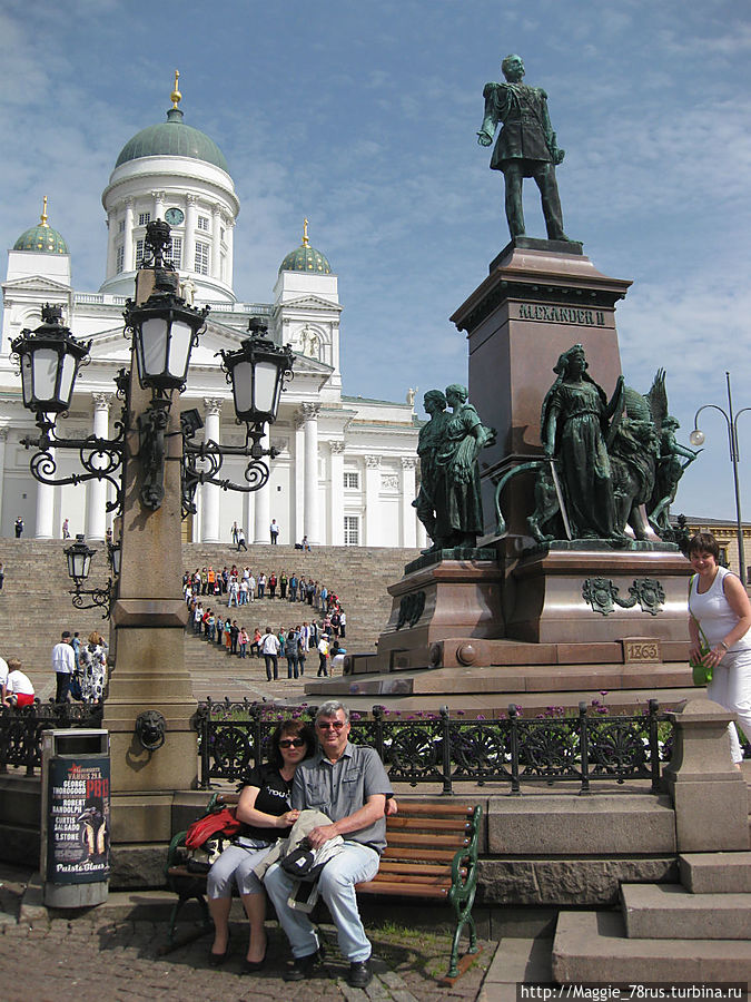 Вот за все это( и многое другое, о чем я попытаюсь рассказать в картинках)я и люблю Хельсинки. Мою любовь разделяет мой муж и большое число русских туристов. Наглядный пример этой любви — вот такая инсталляция в исполнении наших земляков на Сенатской площади (Senaatintori) Хельсинки.