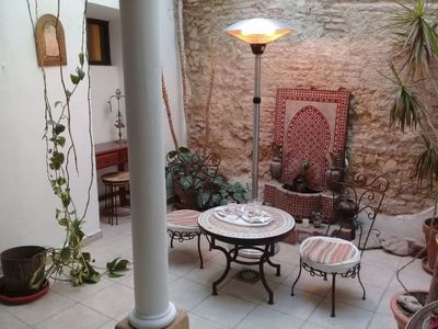 Нам оба раза доставался вот этот столик в маленьком холле, с правом на местный подогрев (дело было в необычно холодном для Испании марте).