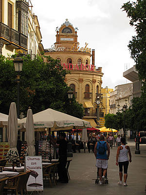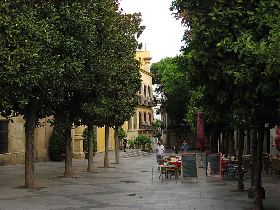 Оставили машину на подземной парковке под центральной площадью, прописались в отеле (ещё тот андалузский двор — расскажу позже) и пошли в город.