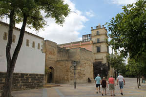 В поисках знаменитой бодеги Tio Pepe мы попали к стенам городской крепости. А как в Испании может называться крепость? Конечно же Альказар. Эти стены сохранились с 11 века, времени постройки первой крепости. Мы подошли к крепости со стороны парка С этой стороны обращают на себя внимания две башни со входом.