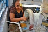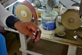 Любопытно заглянуть в ювелирную мастерскую, где вручную шлифуют лунный камень, какая это монотонная и кропотливая работа. Лунный камень имеет слоистую структуру, поэтому с ним работают очень аккуратно.