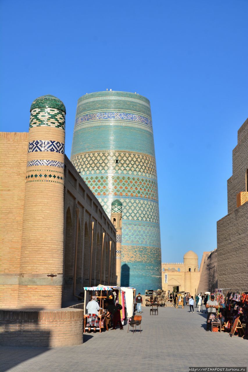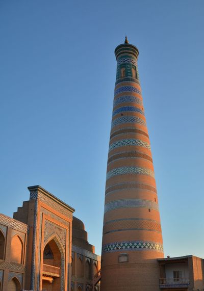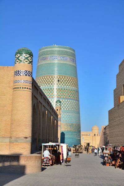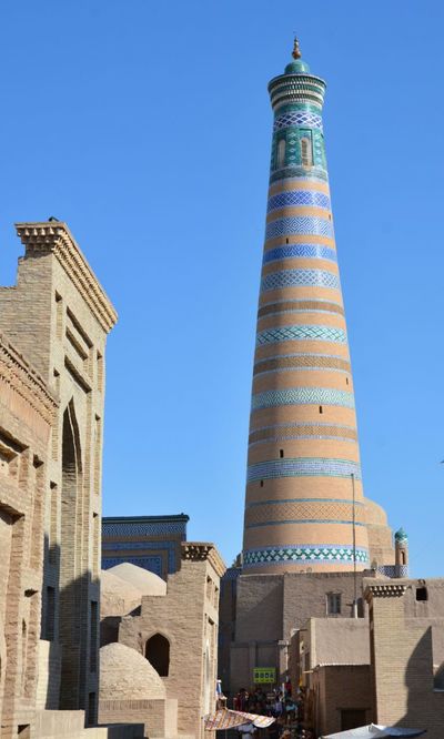 Минарет Кальта-Минор построенный в 1855 году, изначально задумывался как самый большой в Средней Азии. Хивинский правитель Мухаммед Амин-хан II приказал построить его высотой 80 метров. Хана убили во время сражения с туркменами и минарет остался незавершённым.