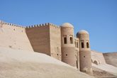 Стена Ичан Калы высотой около десяти метров укреплена полукруглыми башнями, а по её