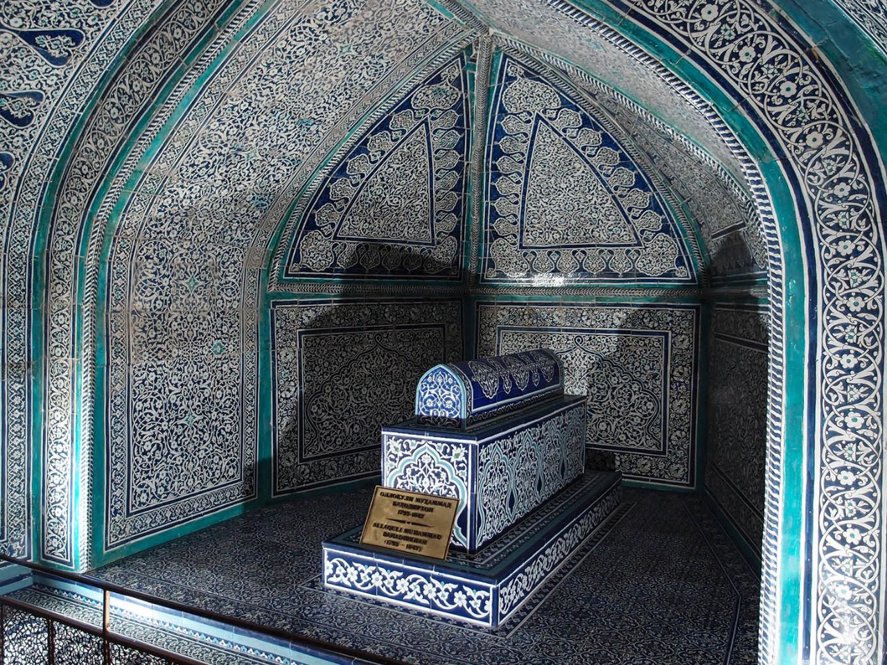 Постепенно вокруг вырос целый комплекс построек, а надгробие и сам мавзолей Пахлавана Махмуда были декорированы майоликовой узорной облицовкой.