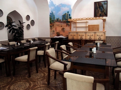 Он находился внутри шахристана, в паре кварталов от стены. И поскольку весь шахристан является городом-музеем, и проезд автотранспорта местами запрещён либо очень ограничен, то до отеля пришлось идти пешком, нещадно убивая колёса чемоданов о неровную местную «брусчатку».