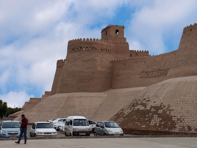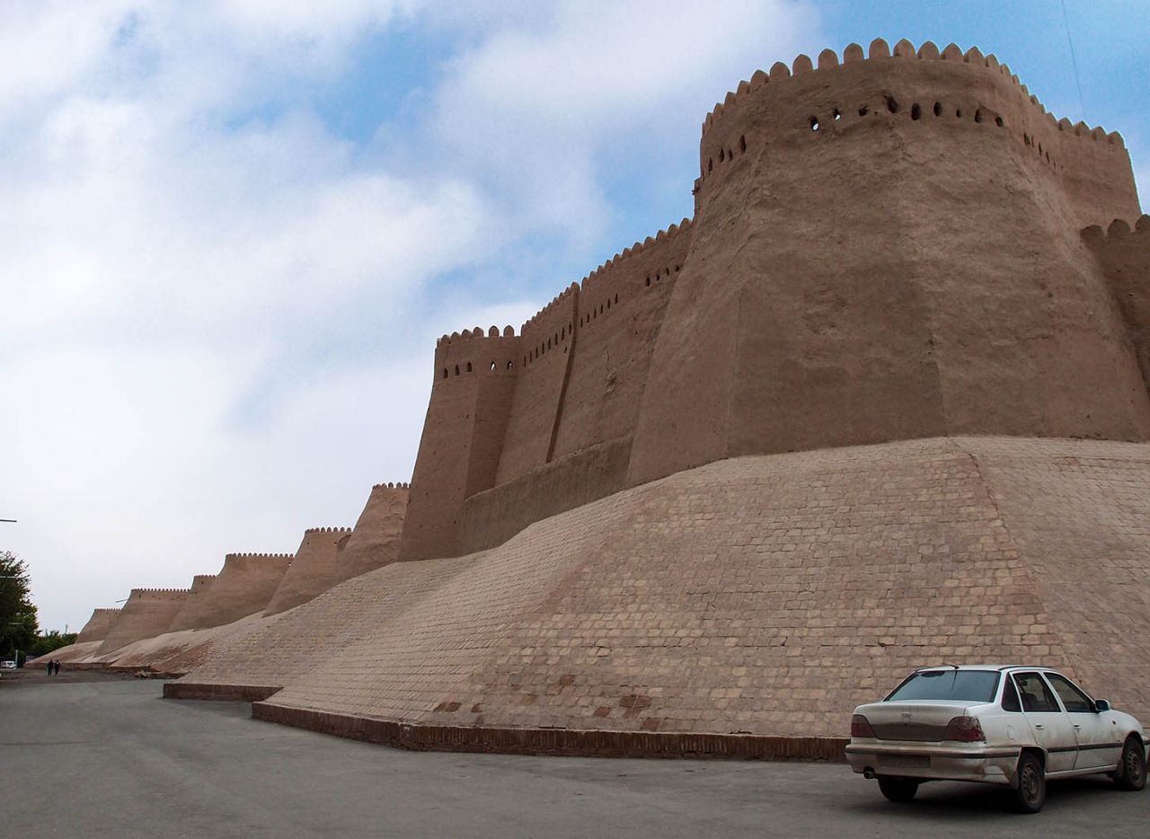 Едва завидев стену — древнюю, зубчатую, с замысловатыми изгибами, ещё более необычную, чем в Бухаре, — я начала нетерпеливо пританцовывать на месте. Сонное оцепенение, навеянное 8-часовой дорогой через Каракум, вмиг улетучилось.