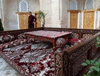 Внутренняя часть бывшего медресе оказалась необычайно уютной, мы с удовольствием проводили там время за беседой по вечерам. Дворик был уставлен дастарханами, в свою очередь устланными яркими коврами. Всё новёхонькое, ещё не выгоревшее под солнцем и не вытертое от сидения многочисленных гостей...