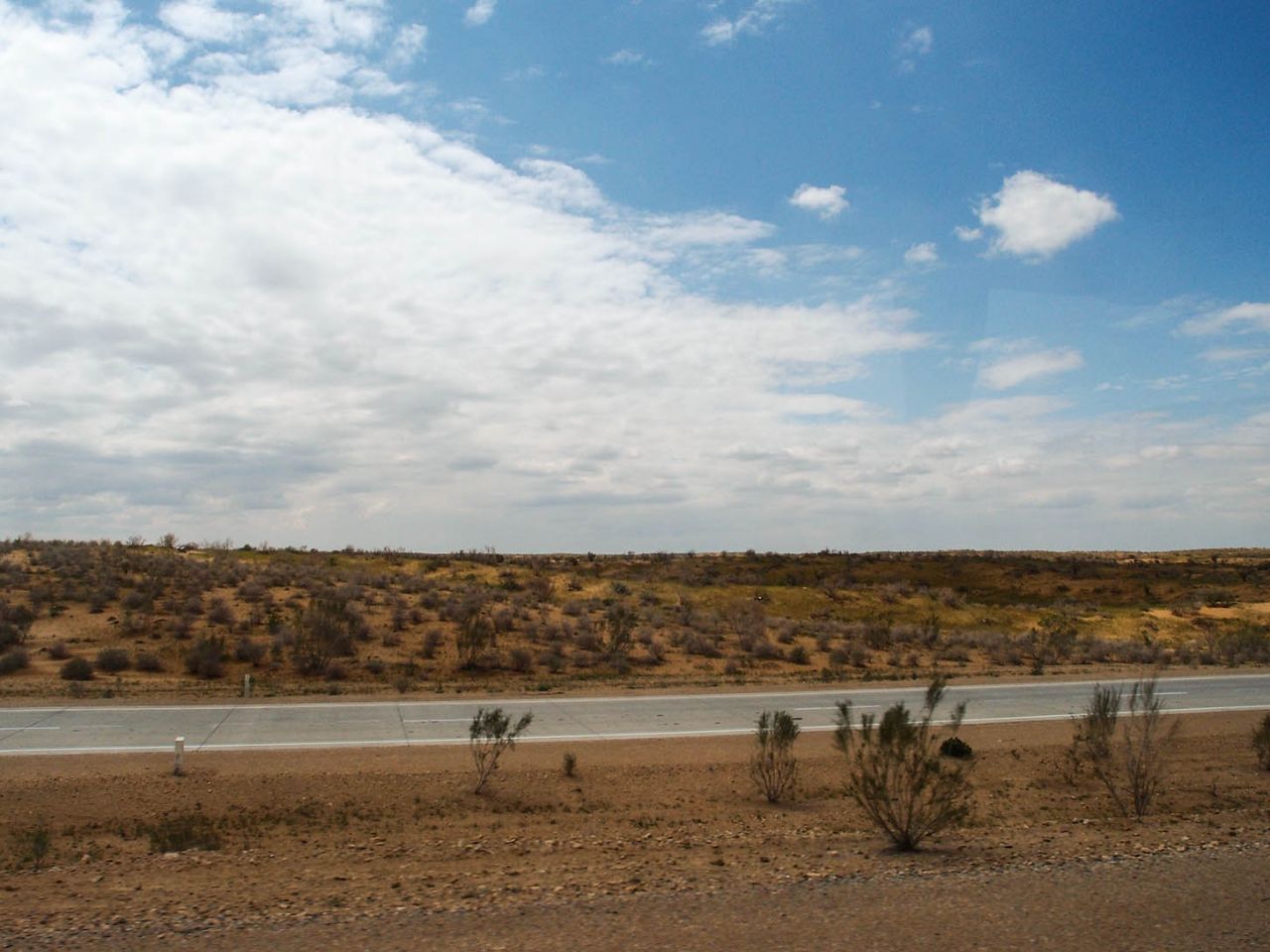 Наш переезд из Бухары в Хиву был самым нудным моментом путешествия по Узбекистану. Целых восемь часов мы тряслись в автобусе, проезжая через пустыню Каракум. И даже отвлечься любимым занятием — фотографированием и разглядыванием пейзажей за окном — никак не получалось. Не было на местности ни ожидаемого волнистого моря барханов, ни какой-либо рельефности вообще.