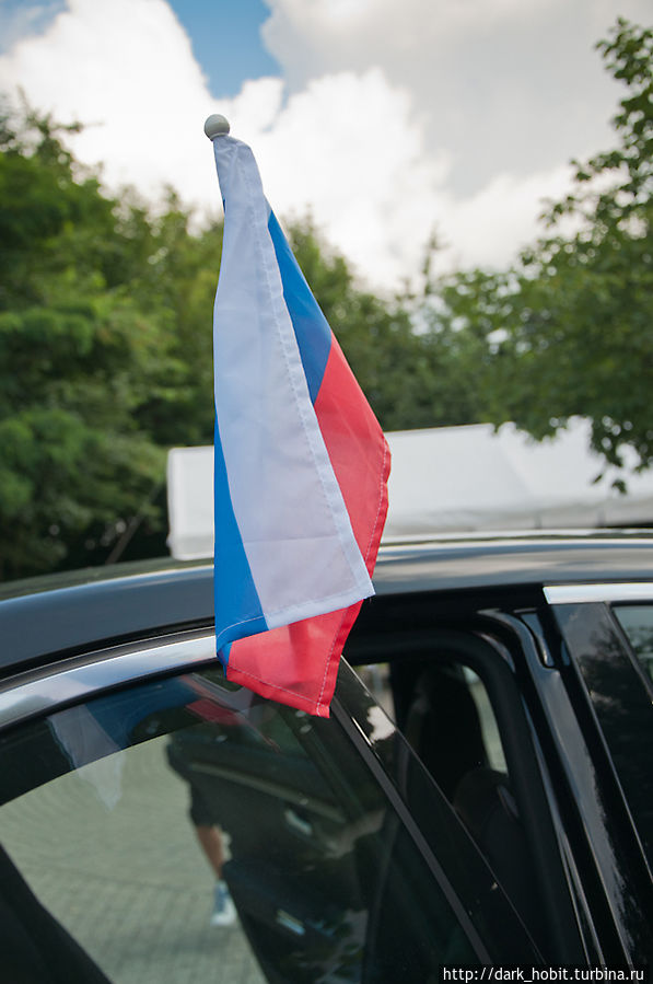 Итак, пасмурным субботним утром наша бригада выдвинулась в сторону автодрома. Ребята основательно подготовились к поездке, обвешав все машины российскими флагами.