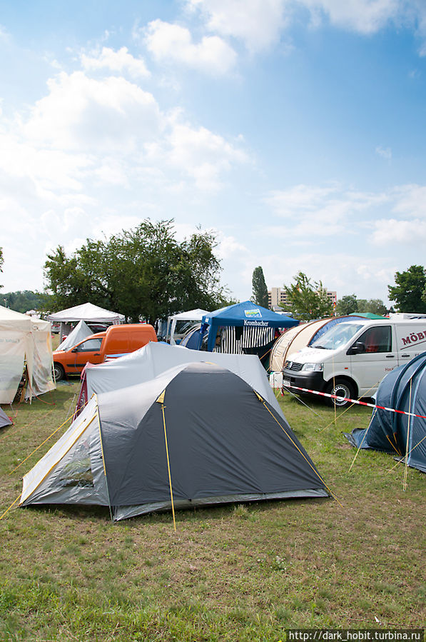 Многие люди приезжают на гонку сильно заранее, ставят палатки или живут в своих автодомах. К субботе этот лагерь обретает вид своеообразного города, в котором бурлит жизнь. Орет музыка, кто-то что-то жарит, где-то пьют пиво, там и сям отдыхают люди в шезлонгах. И все это под далекий рев двигателей гоночных болидов.