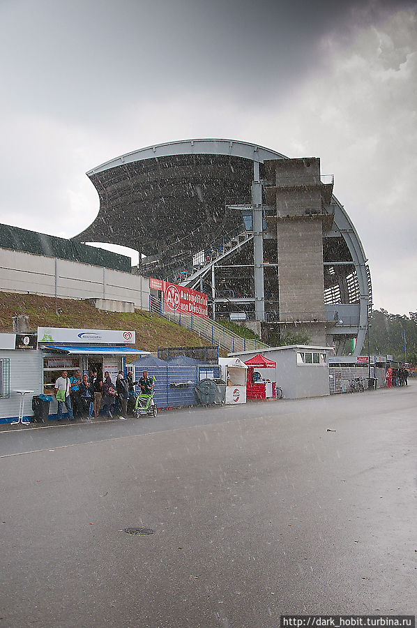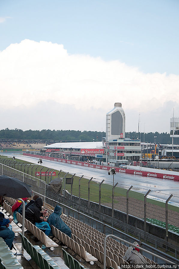 На автодроме можно провести весь день, так как перед Формулой-1 проводятся гонки поддержки. Мы пришли как раз на заезды DTM. Традиционно, в те же выходные здесь проводится и GP2, младшая формула. Таким образом, машины раскатывают мокрую трассу перед заездами королевы автоспорта. А погода как раз стала налаживаться, дождевые облака унесло ветром и квалификация Ф1 должна была пройти по суху. А пока кузовные машины DTM гоняли по мокрой трассе.