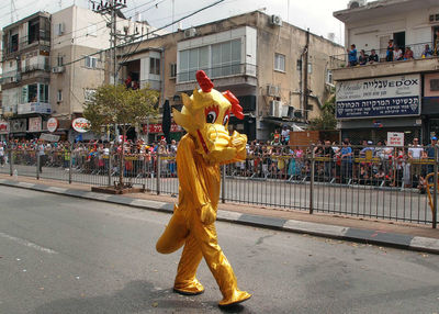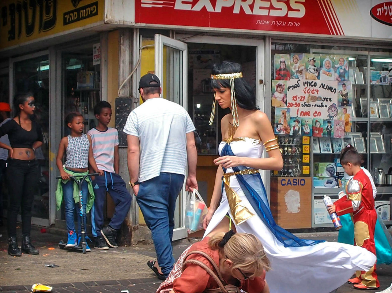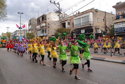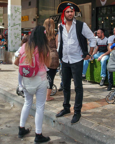 Да, что там! Администрация любого завода вполне способна оплатить работу нескольких художников, чтобы те на проходной размалёвывали лица всем сотрудникам. На Пурим вы кого только не увидите в "тахпосет" (карнавальном наряде) — служащих банков и ж/д касс, водителей и продавцов, даже блюстителей порядка. А уж на улицах среди праздношатающихся или идущих по делам и подавно. Кто во что горазд.