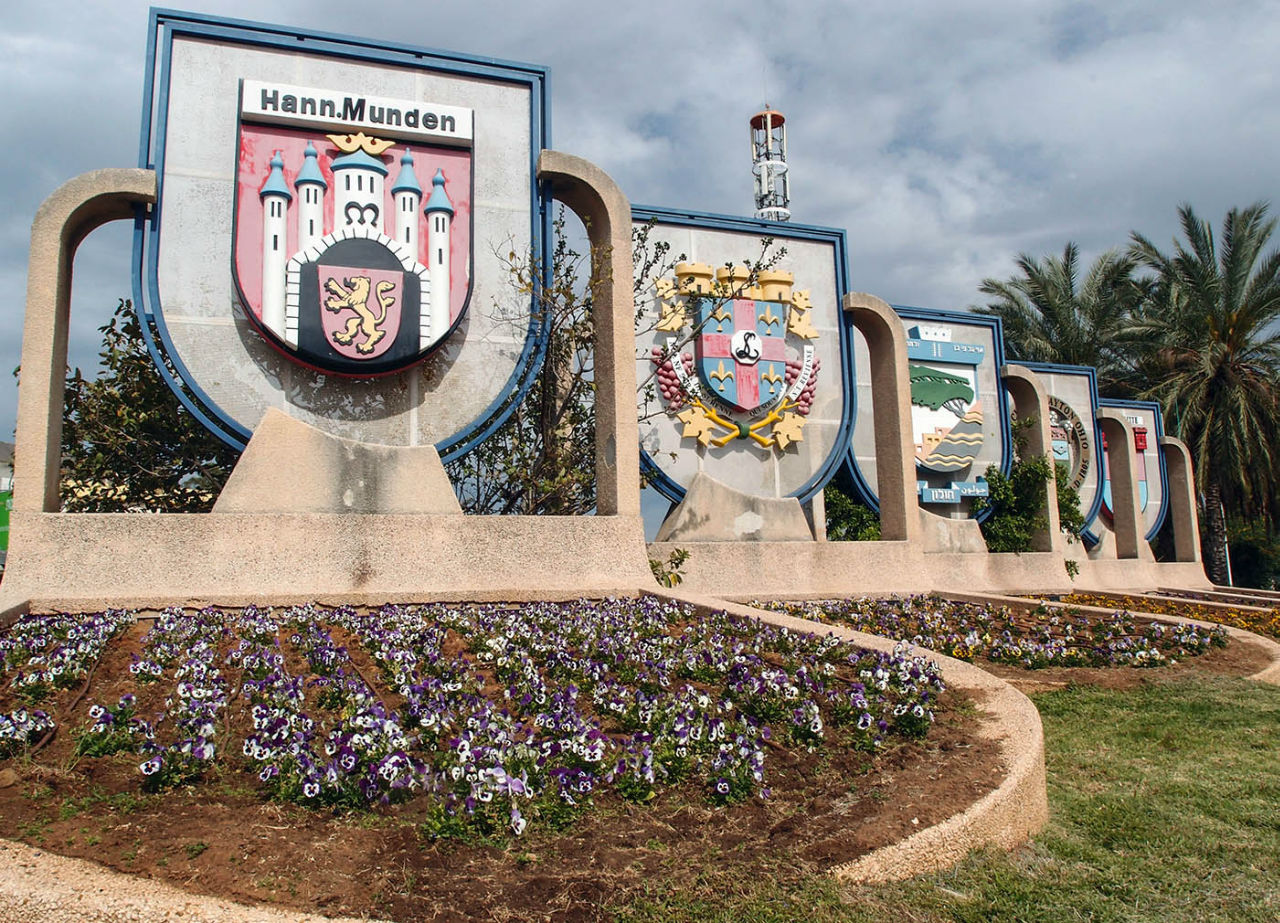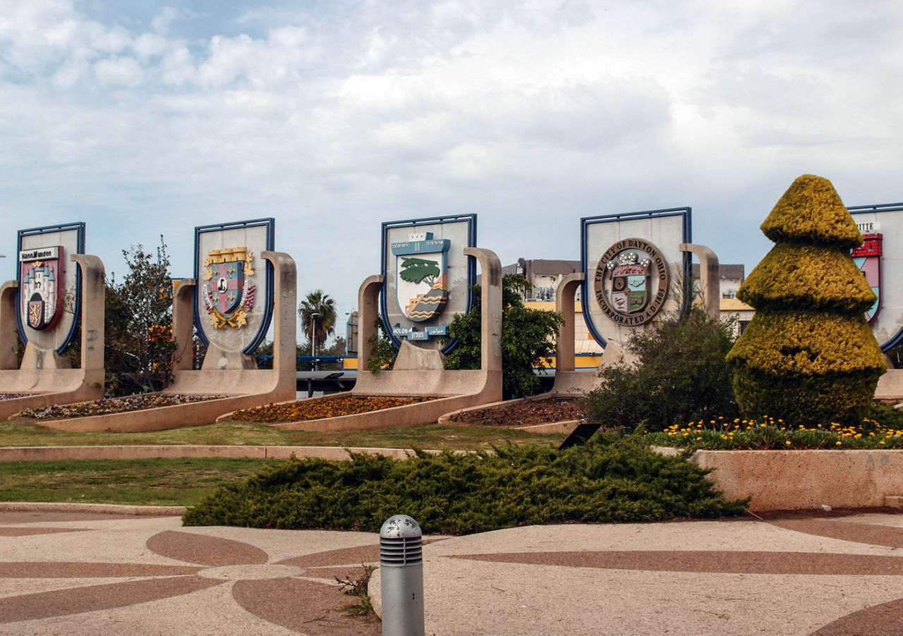 На больших медальонах в парке красуются гербы городов-побратимов Холона.