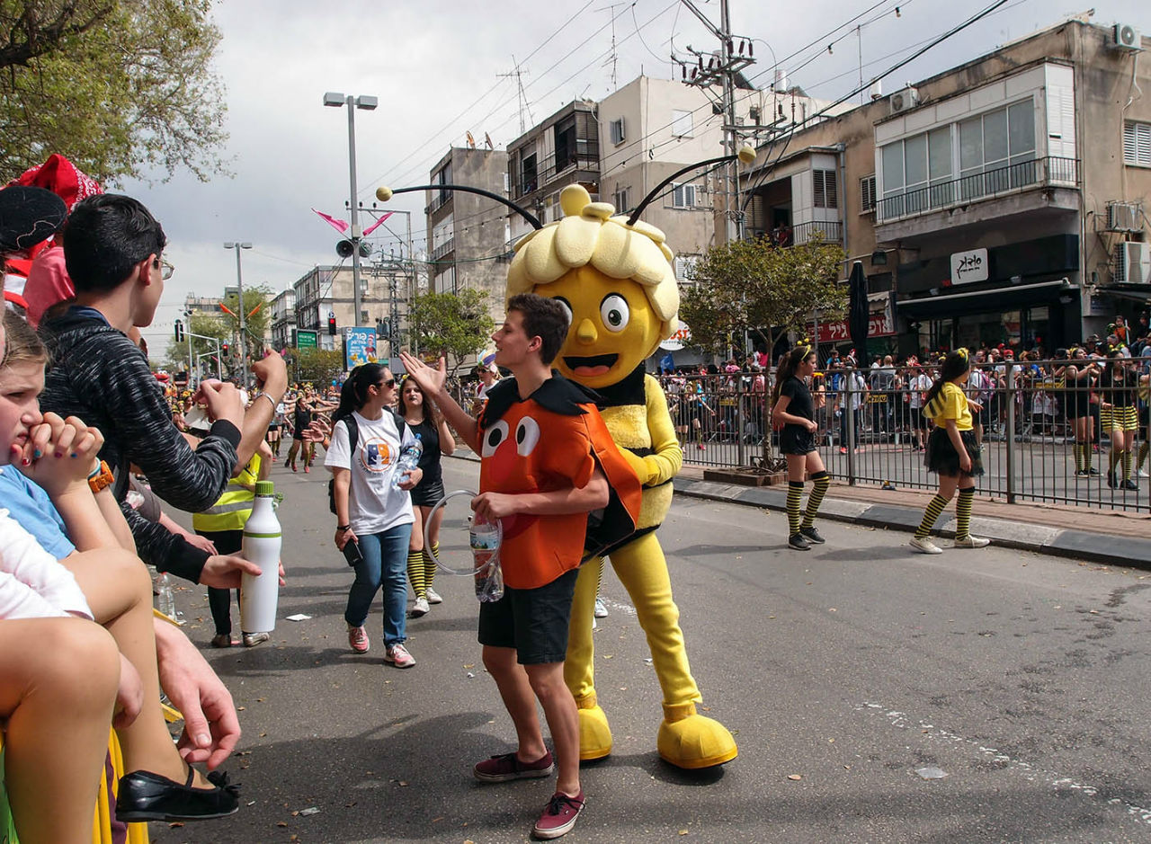 А Пурим у нас любят и празднуют практически всенародно. В школах, садиках и больших торговых центрах проводятся детские утренники, по стране вообще — множество частных вечеринок. Даже на серьёзных предприятиях допускается в этот день всю смену отработать в клоунском парике или с какими-нибудь дурацкими заячьими ушами на макушке.