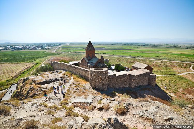 Монастырь-крепость Хор Вирап, возвышается на холме древнего Арташата и относится к VII в.,