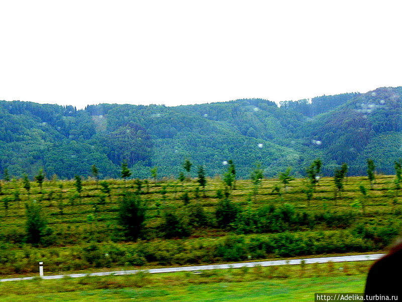 Следующий день начался с того, что я из окна нашей гостиницы увидела первый "краешек" гор, на тот момент просто я ещё не видела Альп, да и вообще гор, но это чувство запомнилось. Дальше красивые , ухоженные дома, холмы. Помнится лил дождь, я ещё думала, что мне не везет- ехала на море, а у меня чем дальше, тем дождливее.