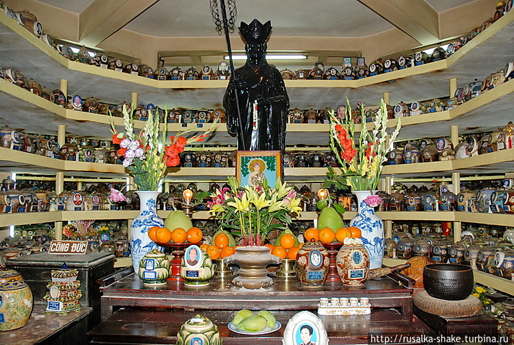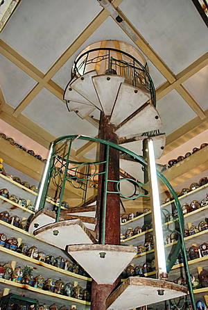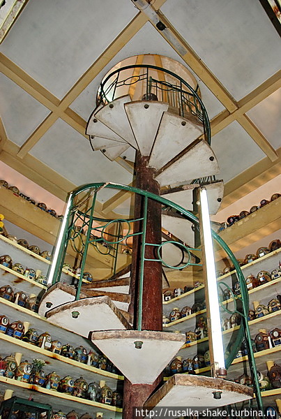 Внутри был человек, скорее всего, служащий. Я жестами попросила разрешения походить, посмотреть. Он кивнул и продолжил заниматься своими делами. В центре распологалась винтовая лестница. Я решила подняться выше. На остальных этажах все тоже самое — урны с прахом. Веселенькие, надо отметить, ярко раскрашенные, с фантазией... Это, видимо, семья...