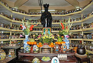 Пагода Винь НгиемСразу за молельней, вздымается ввысь башня высотой в четыре метра и состоящая из семи ярусов. На берегу озера расположенного рядом, раскинулись постройки имеющие меньшую значимость, в этом месте так же построена башня для хранения урн с прахом усопших.