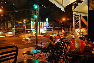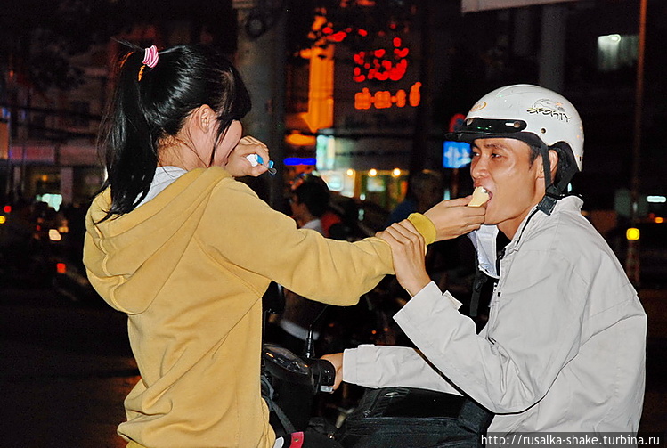 И снова тишина перед очередным выпадом ревущей мототехники. Что касается центра города, то ночью там ещё более шумно, чем днём, и с приходом темноты Хошимин расцветает в предвкушении очередного бесконечно длинного веселья.Сайгон – город, который никогда не спит. В любое время суток дороги заполнены мотоциклами, которые создают непрекращающийся монотонный рокот. Автомобиль достаточно редкий гость на дорогах ночного города, поэтому если они и встречаются, то в основном в виде разукрашенных такси.