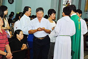Медленно продвигаюсь вперед, к алтарю. Священник что-то вещает...