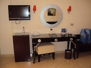 ,супы на обед и ужин это просто жесть, туда покрошено все что осталось наверное с салатов и сварено, есть не возможно, только борщ можно было съесть, когда был день русской кухни .Кофе машин в этом отеле нет, только растворимый из банки со вкусом какао.Приборов на столах вечно нет, сплошное самообслуживание, а отель вроде пятерка,обеды были в отеле Кинг Тут или в ресторане на пляже,очереди жуткие, столы грязные, пол липкий. Официант Диа жуткий малый. Соки если их можно так назвать настолько разбавлены водой, пить их не возможно, благо рядом много магазинов и сок можно купить там. В ресторан Аля карт так и не смогли попасть, запись с 10.30 утра до 12.00 , придя 10.10 мест уже не было. Комары ночью одолели, благо брала с собой фумигатор. Теперь про пляж, он мне напомнил Крым 90 годов, люди лежат друг на друге, иной раз к морю не пройти, лежаков ближе к 10 утра не найти. С утра еще можно поплавать с маской, но после 11 отлив. После обеда поспать не возможно, на бассейне так гремела музыка, как у людей маленькие дети спали под нее. Вечером выйти некуда, территория отеля очень маленькая. Есть на территории две обезьянки , но у них в клетке очень грязно и противно пахнет, еще есть две черепахи ,которых кормят старым салатным листом. Отель расположен в старой Хургаде, она впечатления на нас не произвела. Ездили на райский остров , эту экскурсию брали у Сэмушки на пляже, цена 25 долларов, у Теза 55 долларов, экскурсия просто супер, осталась масса впечатлений , фото и видео .