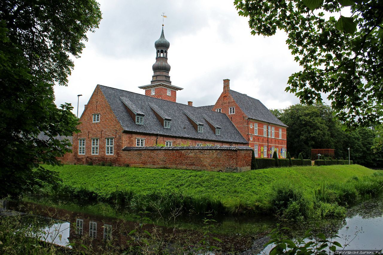 Замок построен на месте монастыря францисканцев. Именно монахи устроили остров посреди большого парка, на котором сейчас красуется кирпичное строение. Во время Реформации, которая началась в Северной Европе в начале 16 века, монастырь был распущен. Тем временем на этой территории в 1544 году образовалось герцогство Шлезвиг-Гольштейн-Готторф, и его первый герцог Адольф ( Adolf von Schleswig-Holstein-Gottorf), который был сводным братом датского короля Кристиана III, решил построить себе резиденцию герцогского двора на западном побережье. Таким образом на месте монастыря с 1577 по 1582 год был построен этот замок.