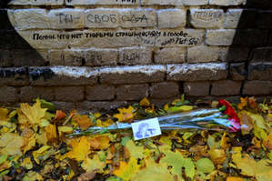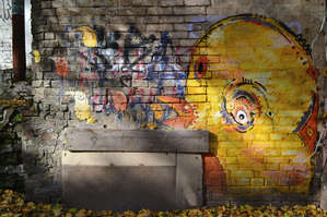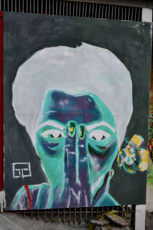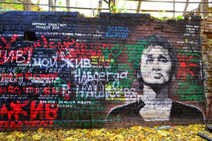 Портрет в полтора человеческих роста впечатляющ, и вся стена плотно испещрена надписями.