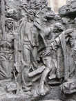 В этих фигурах мало пафоса, который зачастую присущ военным памятникам. Просто люди, воюющие на фронтах, в партизанских отрядах, работающие в тылу, попавшие в концлагеря, ожидающие и молящие о своих родных.
