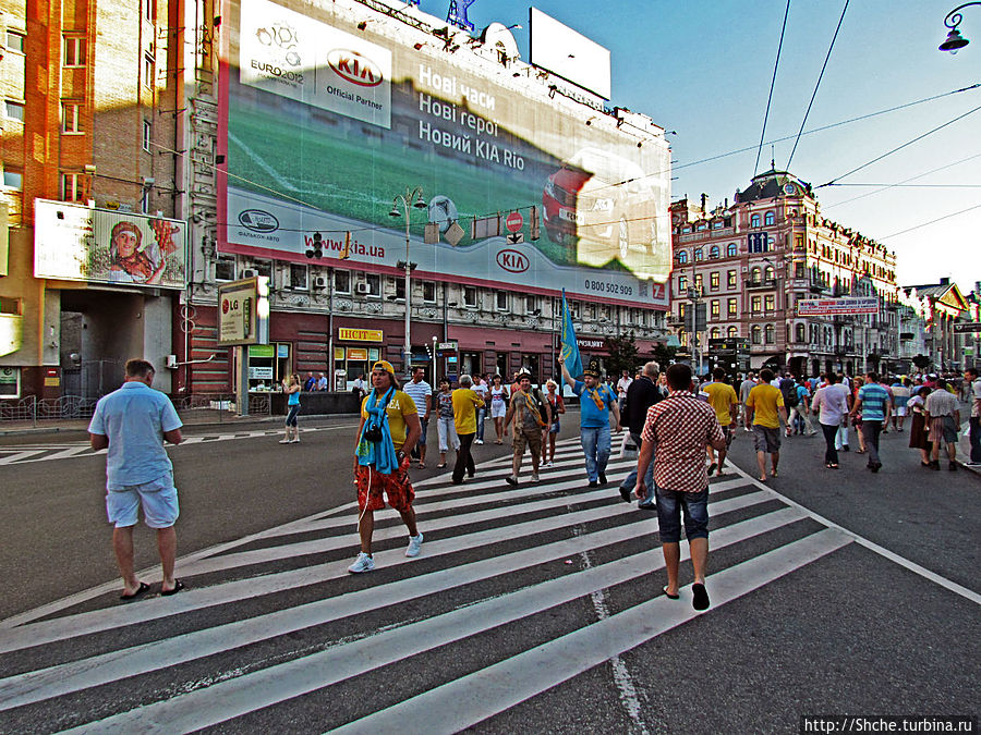В рамках ЕВРО-2012 в Киеве проходило пять матчей. И в дни этих матчей центр города выглядел очень знакомым, но совсем не привычным. Улица Красноармейская, Бессарабская площадь становились на время пешеходными, а Крещатик и Майдан вообще на месяц превратились в фан-зону.