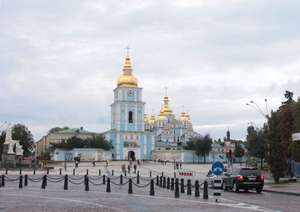 А чуть дальше еще один из древнейших монастырей в Киеве Михайловский Златоверхий монастырь 12 века. Предполагается, что Михайловский собор был первым храмом с позолоченным верхом, откуда на Руси пошла эта своеобычная традиция.