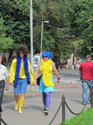 К нам приехали болельщики со всей Европы, но пока что больше всего шведов. Они заполонили центр города, перемещаются группами. Как сказал мальчик-швед, они боятся нападений, поэтому группируются. Особенно интересно наблюдать make-up болельщиков. Кстати, столица Украины стала совершенно желто-синяя... даже не всегда понятно где украинцы, а где шведы...