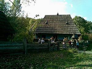 Вы в Музее народной архитектуры и быта Украины. Основан 6 февраля 1969 года. Этому предшествовали общественные инициативы, в частности, публикация открытого письма о создании музея народной культуры в Киеве от 14 августа 1965 года в газете «Литературная Украина». Архитектура всех регионов Украины представлена в следующих экспозициях музея: «Среднее Приднепровье», «Полтавщина и Слобожанщина», «Полесье», «Подолье», «Юг Украины», «Карпаты», «Мельницы», «Ярмарочное поле» и «Современное село». На площади музея сосредоточено 275 архитектурных экспонатов народного строительства XVI—XX веков. Усадьбы с сельскими домами и хозяйственными зданиями сформированы с документальной достоверностью и сгруппированы соответственно особенностям планирования поселений того или иного историко-этнографического и географического региона. В музей также были перевезены деревянные церкви, ветряк и и другие памятники архитектуры и быта. В музее собрана огромная коллекция народной одежды, мебели, деревянной и глиняной посуды, мужской и женской одежды, одна из лучших коллекций народных музыкальных инструментов.