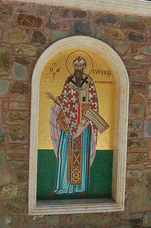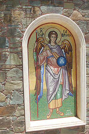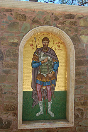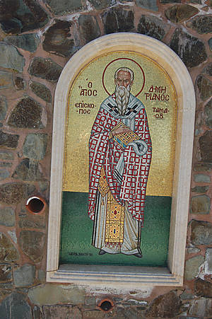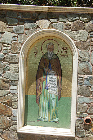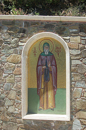 Стоит над горою Макарий - первый в стране президент стоит как бы на островке, огибаемым с двух сторон дорогой. Дороги идут словно в картинной галерее, после ремонта стены дорог украшают красивые мозаичные панно с изображениями христианских святых. Мозаик буквально тьма, созданы они кипрскими и греческими мастерами. На каждой надпись по гречески, чтобы люди могли узнать своих святых в лицо. Говорят, что среди мозаик есть две, посвященные русским святым: Сергию Радонежскому и Серафиму Саровскому. Но я до них не дошёл, а ведь было бы интересно увидеть и запечатлеть на далёкой от России земле мозаики с надписями на русском языке.