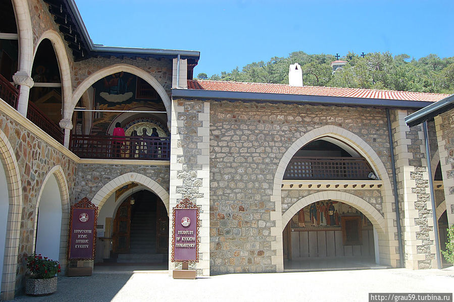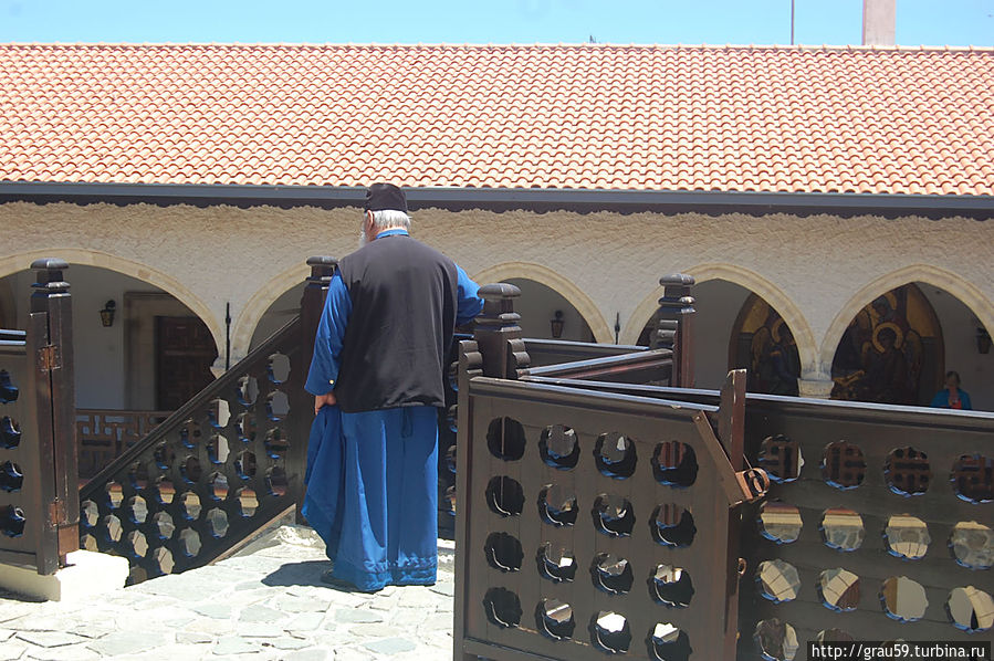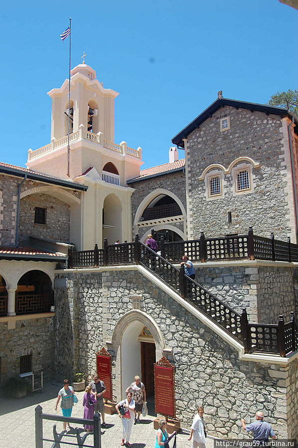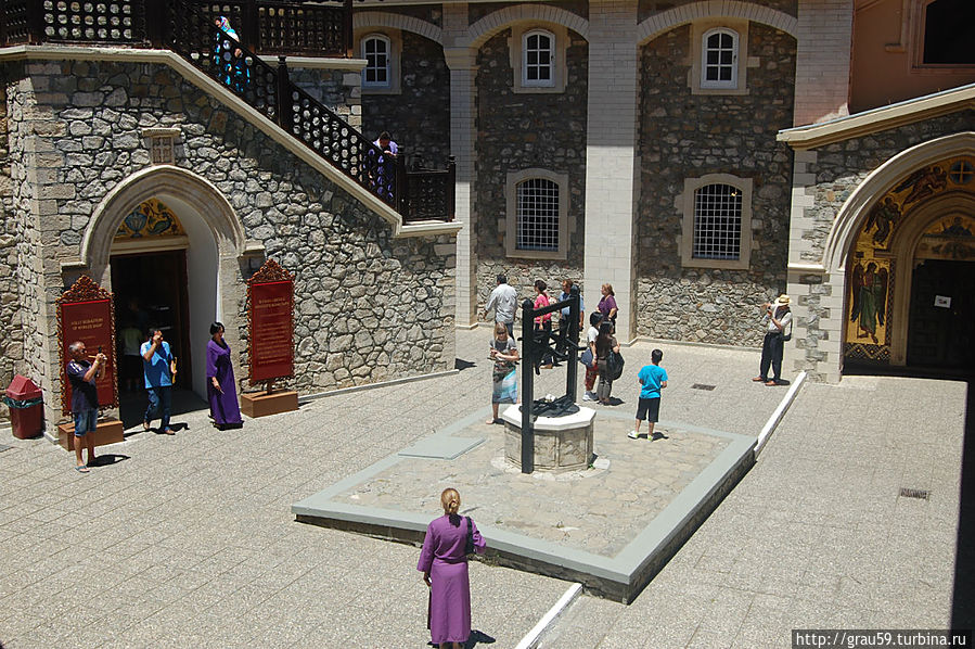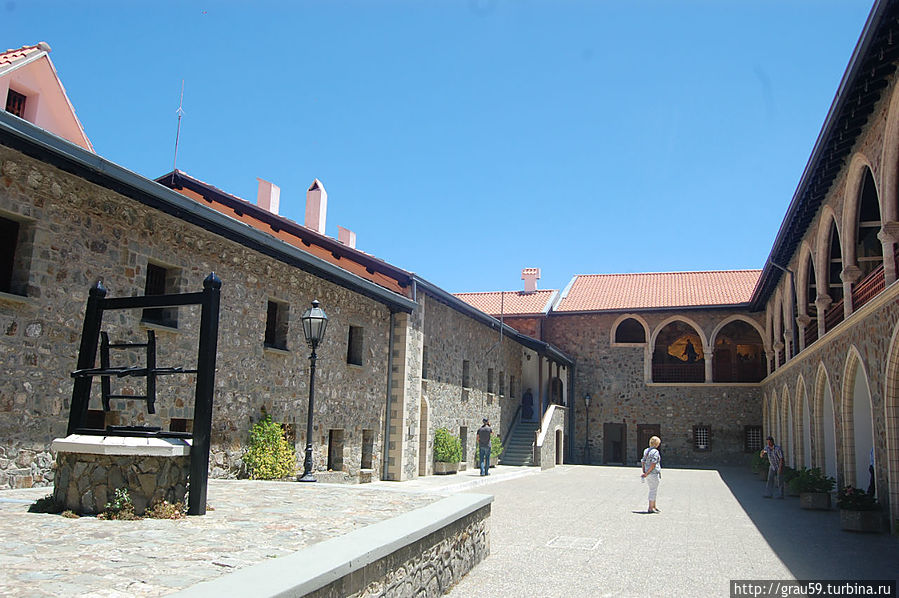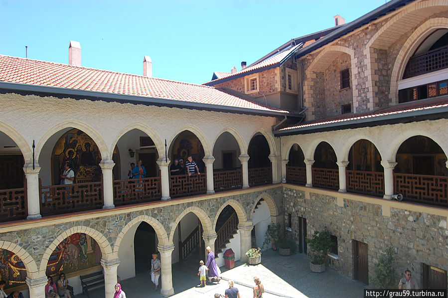 Фрески монастыря Киккос Помимо просто идущих людей в монастыре повсюду идут фотосессии на фоне мозаик. В центре монастыря находится большой вымощенный двор с колодцем.