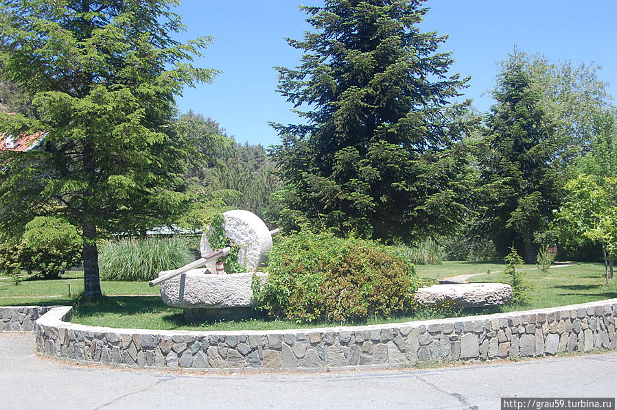 Одним из занятий является производство церковного вина, о чём напоминает старый давильный пресс у стены монастыря.