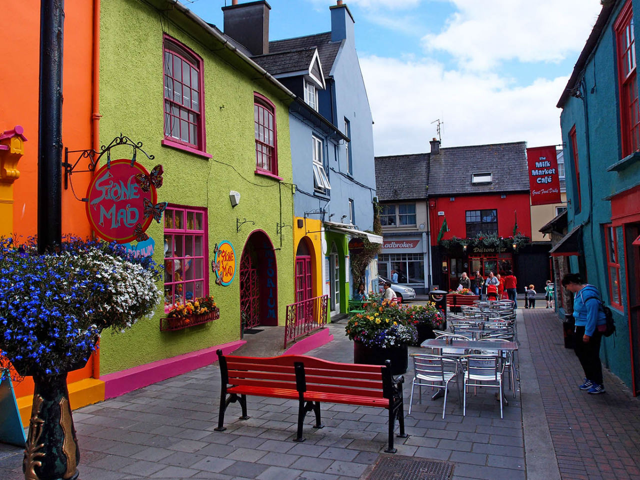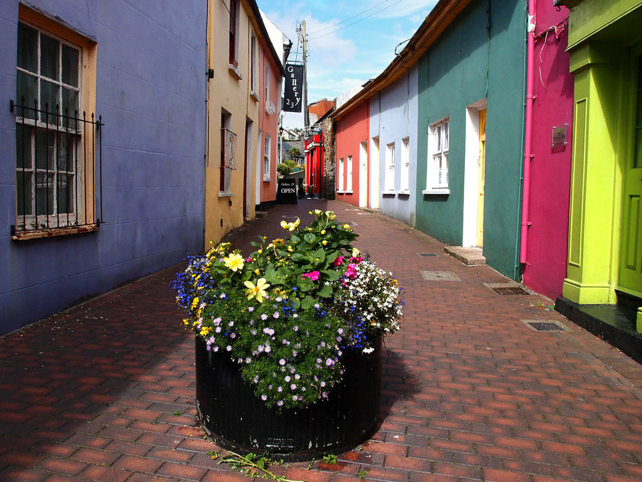 Практически все небольшие ирландские городки очень схожи между собой. Пабы, пабы,...маленькие магазинчики, отельчики, пабы, пабы... Дома невысокие, в два, максимум в три этажа, и построены абсолютно просто — этакие коробочки безо всяких архитектурных изысков. Правда, раскрашены чрезвычайно ярко в самые разнообразные оттенки, а улицы просто утопают в цветах.