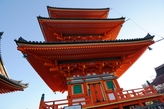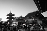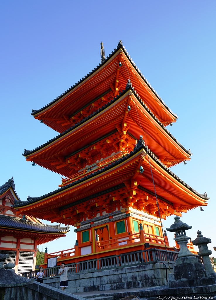 清水寺 — всего три иероглифа, так на японском пишется Киёмидзу-дэра. На мой взгляд, контуры зданий храмового комплекса неуловимо схожи с начертанием иероглифов. Здания здесь практически на все случаи жизни: молельный зал, красная трехэтажная пагода Коясу, хранилище сутр, большие входные ворота и зал Дзуйгудо, посвященный матери Будды, навес для колокола, стойло для лошадей...