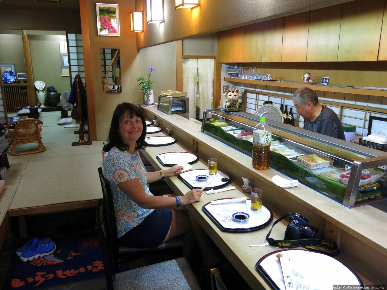 Танюша! С удовольствием прогулялась с вами по Киото — впечатляет и интригует все: и деревянные храмы удивительной архитектуры, особенно поразил храм тысячи Будд (фотографировать нельзя, скорее из-за того, что храм действующий), и настоящие каменные японские садики с цветущими азалиями (написала настоящие, потому что аналоги есть почти во всех городах мира), и вежливые японцы, но вот такое количество суши я бы точно не одолела бы, хотя выглядит все очень аппетитно.
