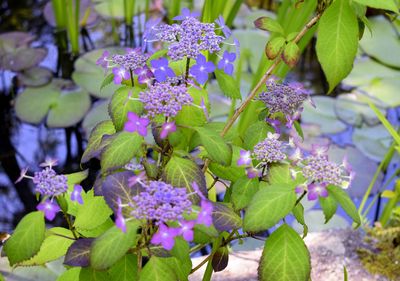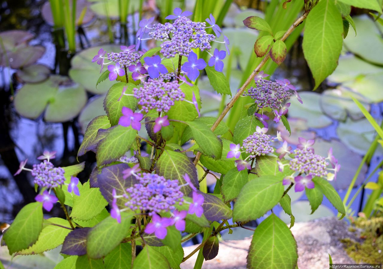 Это прямо отдушина. Здесь почти нет людей, а те, кто присутствует, растворились среди высоких деревьев. Парк довольно большой, дорожки петляют среди бамбуковых деревьев, сосен, кленов, то появляются прудики, то кусты с распускающимися голубыми гортензиями. Нераскрывшиеся пока лепестки похожи на синие бусинки. Очень красиво и нежно.