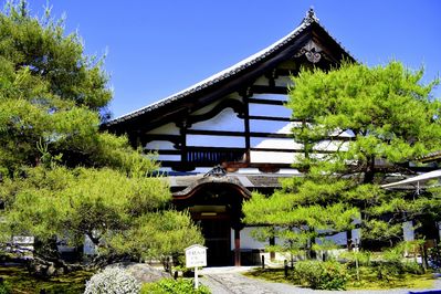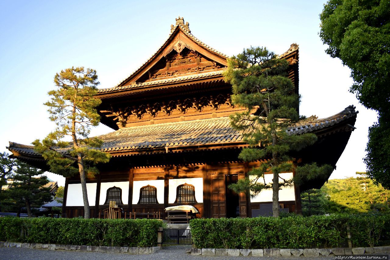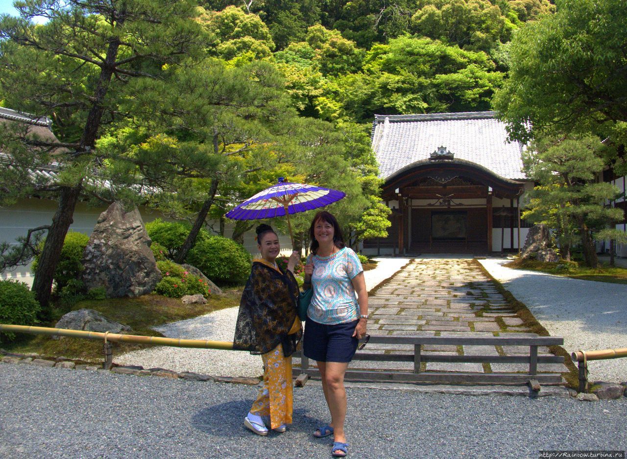 Мы собственно, так и не поняли, где конкретно очутились. Но это были наши первые храмы в Киото и они произвели на нас сильное впечатление. Несмотря на то, что они все были закрыты, находиться рядом с этой стариной было восхитительно. Позже мы узнали, что это был буддистский храм Кенин с прилегающим парком в стиле дзен и чайными домиками.