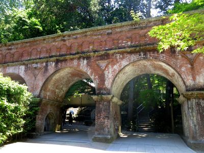 Осмотрев дворец, обнаруживаем первый японский садик с прудом и цветущими азалиями. Здесь наверняка прохаживались важные исторические лица, а сегодня тут ходят толпы туристов.