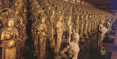 Храм Сандзюсагэн-до прекрасен, таинственен и мистичен. Мы даже шли вдоль этих статуй "медленно и печально" как могли. Жаль, что внутри нельзя посидеть. Интересно,в интернете такой чудесный снимок выложил аккредитованный фотограф? Красиво, в жизни сумрачнее было...