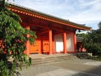 На территории нас встречает не сам храм, а массивные ворота, напоминающие храм. Они называются санмон. Их размер отвечает статусу храма.