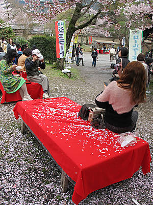 Снег из лепестков сакуры в храмовом комплексе Дайгодзи