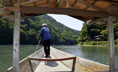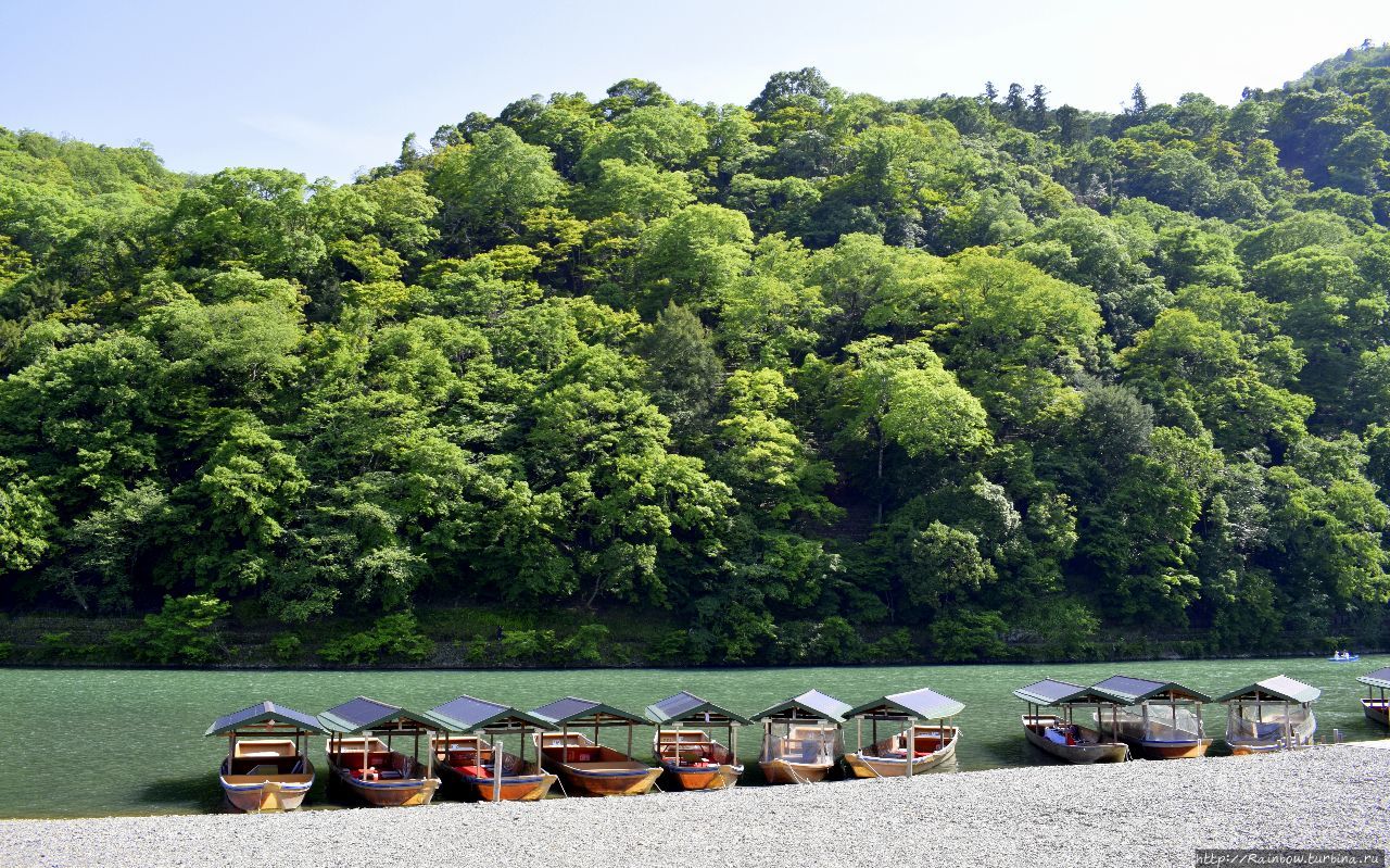 Река Ои — очень известная. Здесь в свое время плавали и отдыхали знать и даже императоры. Здесь очень живописные берега, особенно весной во время цветения сакуры и осенью, во время осенних красок. По реке курсируют разные лодки, но больше всего нас привлекают такие.