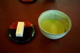 Наш билет включал в себя еще и посещение чайного домика, что мы и сделали. Там нам подали настоящий японский зеленый чай и конфетку к нему. Японский зеленый чай matcha — это порошок из чайных листьев, который смешивается с горячей водой в разных пропорциях и вкус у него особенный.